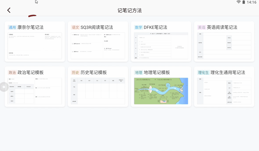 我们提供了面向不同学科的笔记模板,为学生笔记提供科学方法,让学习有章可循。文科需要记忆的知识与概念多,模板注重对知识的分类和整理,能够帮助更好地记;理科更注重解题思路和思考逻辑,训练大脑的逻辑思维能力;同时在学生使用其他应用时,也能随时调起快速笔记,方便即时记录。